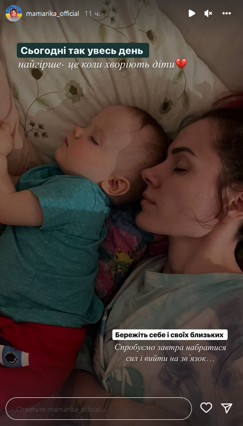 Артистка зазначила, що найгірше, коли хворіють діти. Вона закликала підписників берегти себе та своїх близьких, а також пообіцяла набратися сил та вийти на зв'язок.