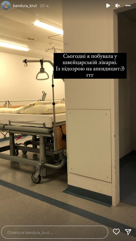 Марина опублікувала в Instagram-"історіях" кілька фотографій зі швейцарської клініки та розповіла, що з нею сталося. Вона зізналася, що за дві години до виступу опинилася на лікарняному ліжку з підозрою на апендицит. "Вони кажуть, якщо це воно, то ти за годину лягаєш на операцію, якщо не воно - біжиш на концерт", - поділилася співачка.