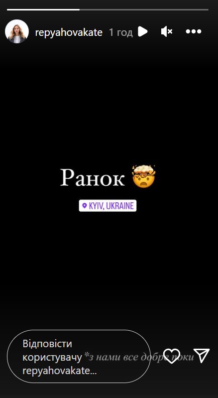 Дружина Віктора Павліка прокоментувала масовану ракетну атаку на столицю одним словом: "Ранок", - зазначила вона та залишила поруч гнівний смайл, а також зробила відмітку геолокації. "З нами все добре поки", - додала дівчина.
