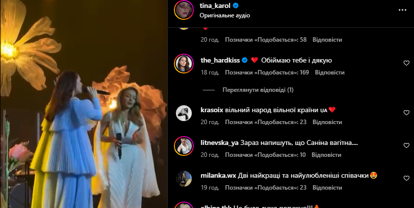 На сторінці в Instagram артистка поділилася приємними емоціями з концерту. На ньому співачки разом виконали відомий хіт "Вільна", зал підхопив його, тож і глядачі, і виконавці були на одній хвилі.