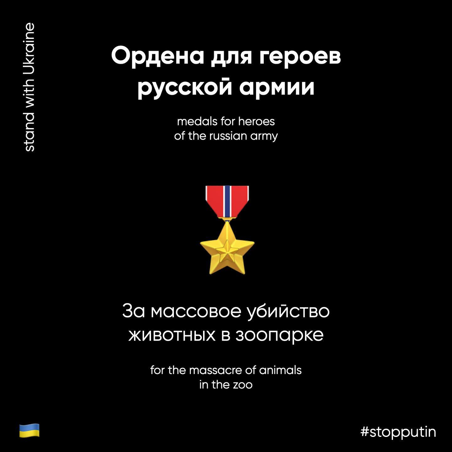 За версією блогера, єдиний героїзм, на який здатні росіяни – вбивства мирних жителів, згвалтування, тортури, масове знищення тварин у зоопарку, пияцтво та мародерство на окупованих територіях.