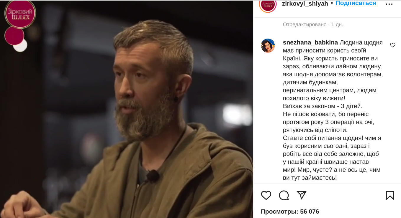 Коли Бабкін підтвердив свій вимушений переїзд у програмі "Зірковий шлях", користувачі мережі почали обурюватися: "Як він взагалі виїхав?" "Хто його пропустив через кордон?" "У Тараса Тополі теж троє дітей, а він зараз із нами, захищає країну".