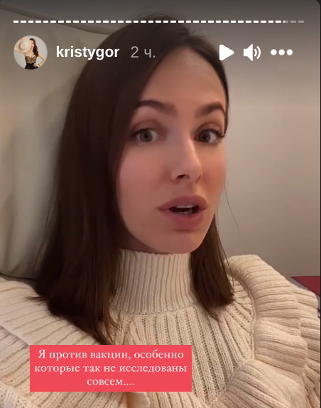 "У нас з Вовою розділилися думки: він за вакцину, а я проти. Я не вакцинувалася ніколи від грипу, і так далі. Я проти вакцин, особливо які не досліджені зовсім", - сказала 33-річна нотаріус.