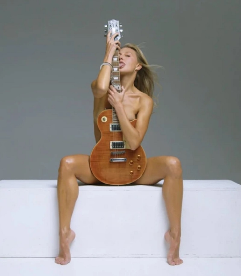 Жінка, яка обожнює провокативні фотосесії, робила з гітарою різні маніпуляції, облизуючи її, вигинаючись та тримаючи в руках. Епатаж - це одна з улюблених справ Бушніної.