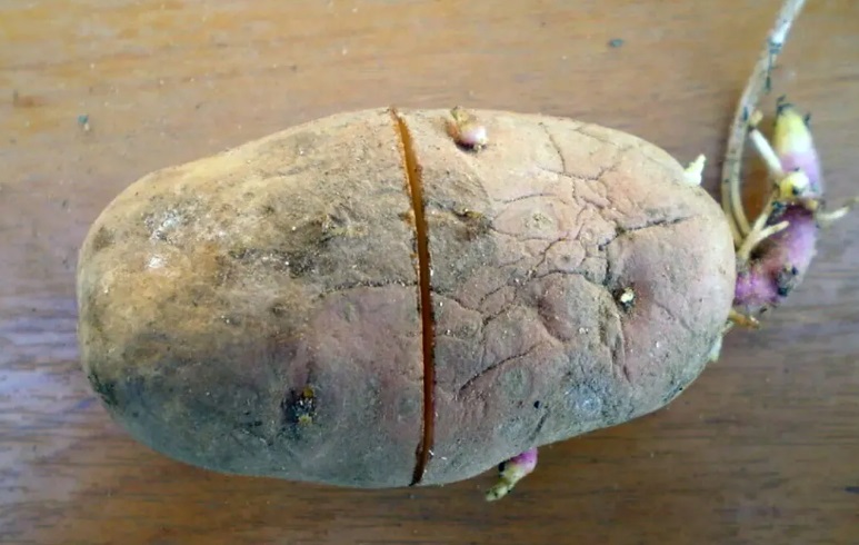 Можна вибрати бульби, на яких більше сплячих вічок. Але якщо їх немає, то надрізи потрібно робити у верхній та нижній частині бульби.