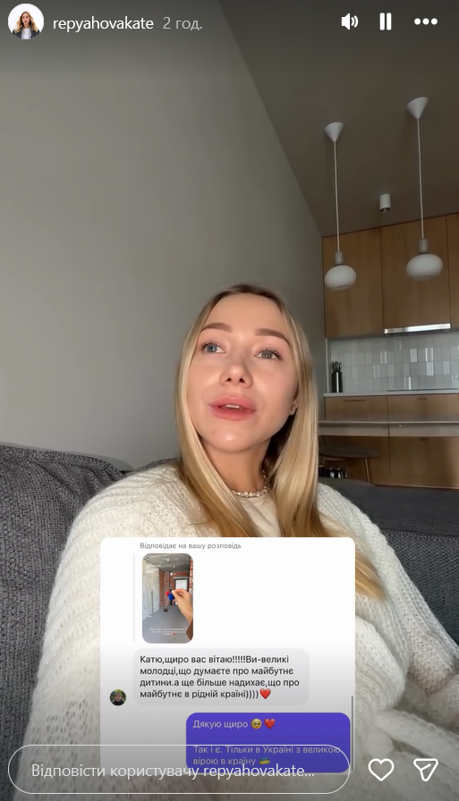 Пізніше блогерка вийшла в розмовні сторіз, аби подякувати за привітання з придбанням власної нерухомості.