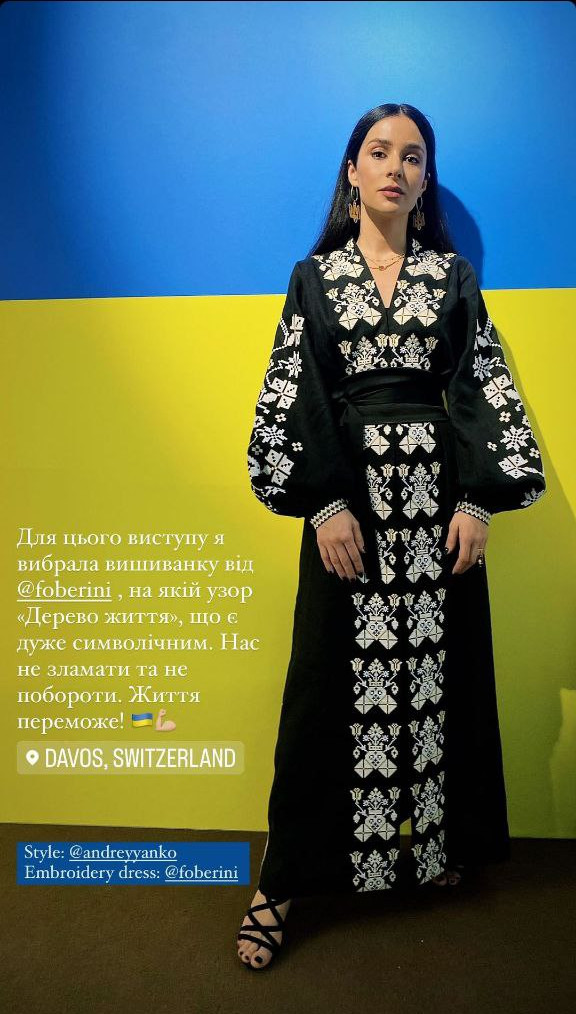 "Для цього виступу я обрала вишиванку, на якій візерунок "Дерево життя", що є дуже символічним. Нас не зламати і не побороти. Життя переможе!" – написала вона.
