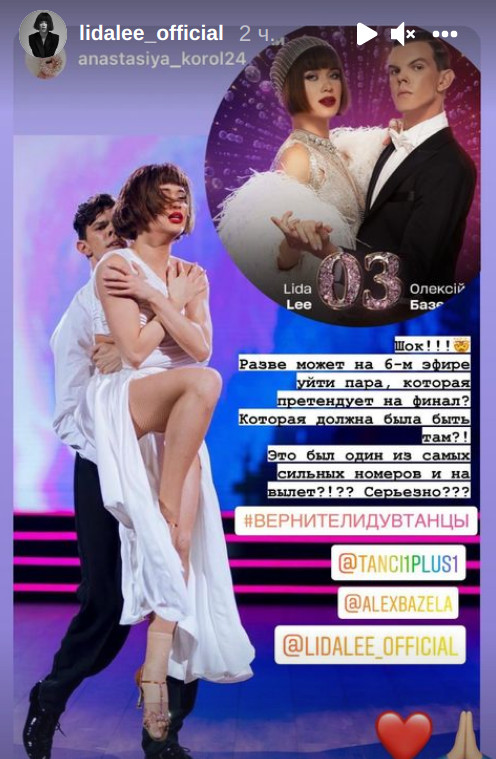 Також Lida Lee отримала підтримку від Ілони Гвоздьової - запрошеної судді 5 ефіру "Танців з зірками" і переможниці 5-го сезону шоу. "Ви, безумовно, гідні були фіналу", - написала вона.