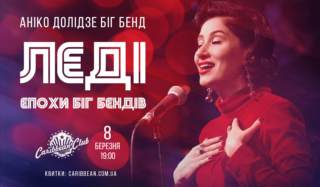 Столичний концерт-хол запрошує зустрічати весну разом з чарівною Аніко Долідзе та її віртуозним біг-бендом. 8 березня Aniko Dolidze Big Band зіграють концерт "Леді епохи біг-бендів" у Caribbean Club Concert Hall.