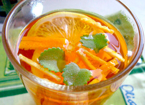 Для початку потрібно заварити міцний зелений чай. Можна використовувати як листовий чай, так і пакетики. Також підходить будь-який сорт на ваш смак. Потім слід остудити чай, додати кубики льоду або крижану крихту. Почистити апельсин і нарізати його на дрібні шматочки. Всі компонентити поєднати та перелити в красивий келих з трубочкою.