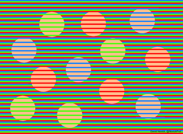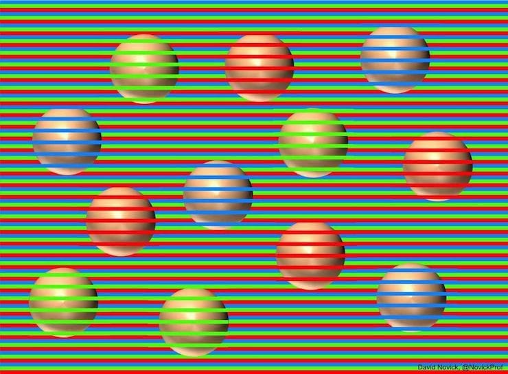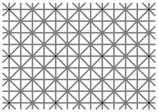 Почнемо з малюнка, на якому зображені 12 чорних крапок. Це не GIF-зображення, картинка є звичайною і статичною. Ніщо на ній не блимає, не змінює колір, не рухається і не зникає. Однак, наш мозок сприймає все зовсім інакше, змушуючи нас думати, що точки постійно переміщаються і стають то чорними, то червоними.