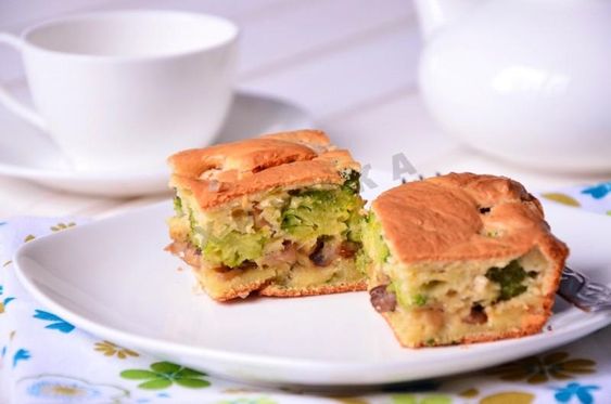 Для приготування пирога з броколі візьміть: 120 г вершкового масла, г муки, 5 яєць, 3-4 ст. л. води, 250 мл вершків, 100 г броколі, 80 г сиру Дор Блю, 40 г волоських горіхів, сіль, перець.