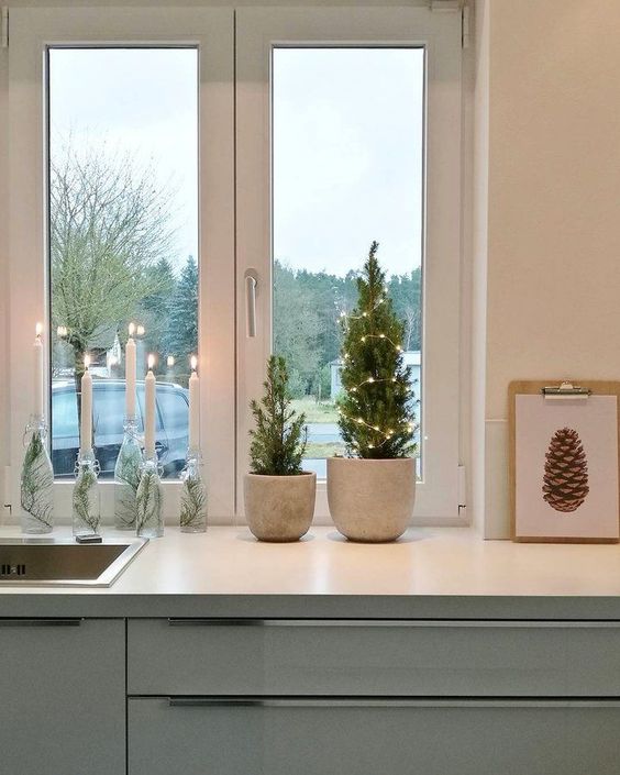 А тим, хто любить мінімалізм у всьому, радимо прикрасити підвіконня вазонами з мініатюрними ялинками. Такий декор не тільки буде радувати око, а й пахнути лісом.