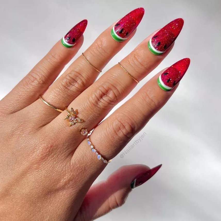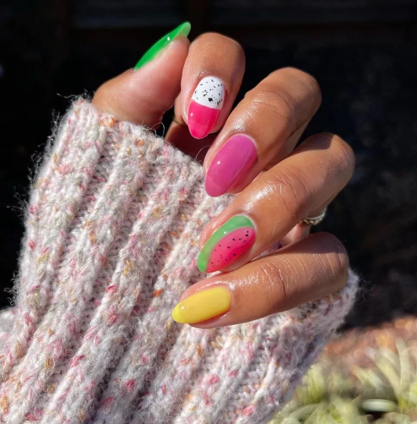 В тренді у 2023-му не лише сапфіровий манікюр, але й кавуновий. Як виглядає ця тенденція у манікюрній справі та які є варіанти її виконання – читайте далі на theLime.