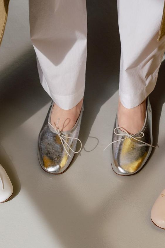 Якщо ви шанувальниця класичних моделей, тоді сміливо купуйте балетки із закругленим носком та милим акцентом у вигляді крихітного бантика. Стилізувати модну пару можна як зі штанами, так і сукнями різної довжини.