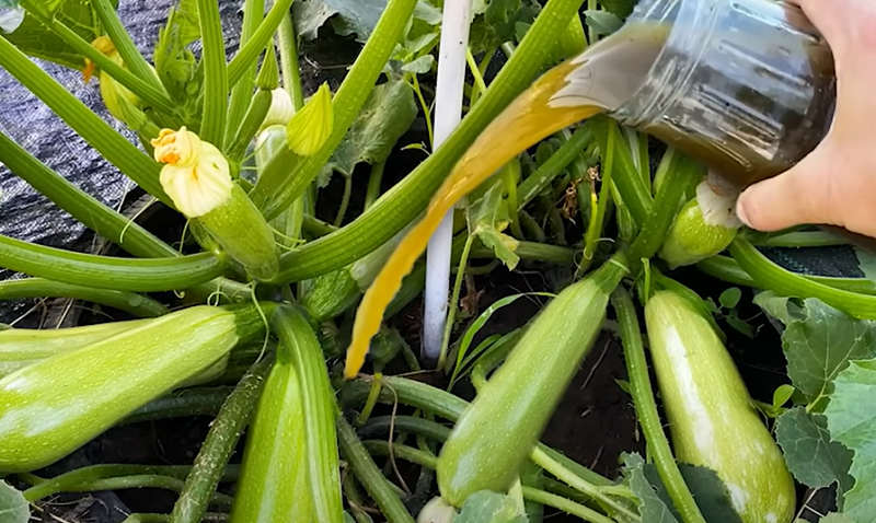 Перед тим, як підживлювати кабачки, він радить плоди, які вже дозріли, зняти і використати в їжу - через декілька днів після підживлення виростуть молоді кабачки і знову буде новий врожай.
