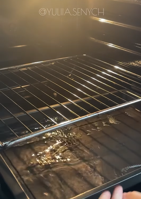 5. Духовку розігрійте до 220 градусів і на нижнє деко за 10 хвилин до випікання поставте ємність з водою, яка буде випаровуватися.
