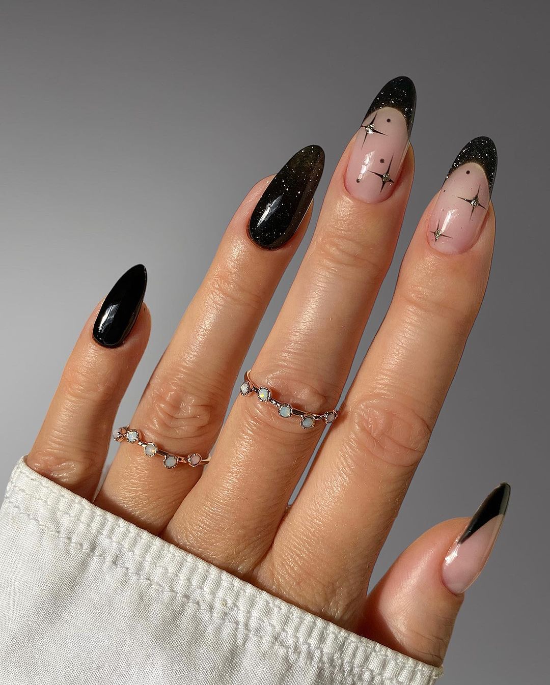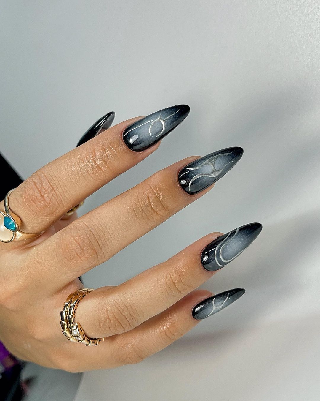 Змішайте чорний колір з іншим відтінком, щоб створити ефект градієнта для стильного та привабливого манікюру. Це надасть вашим нігтям нотку візуального інтересу.
