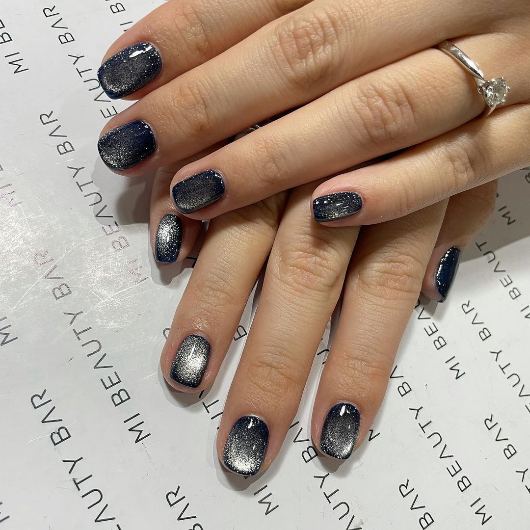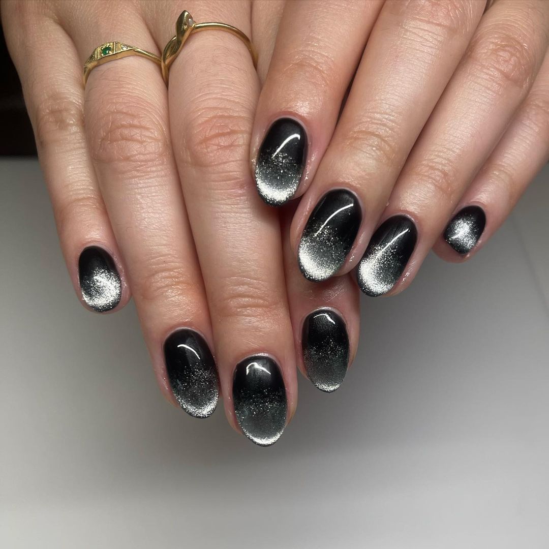 Чорний світловідбиваючий манікюр, також відомий як "котяче око", надасть нігтям розкішний блиск і візуальну глибину.