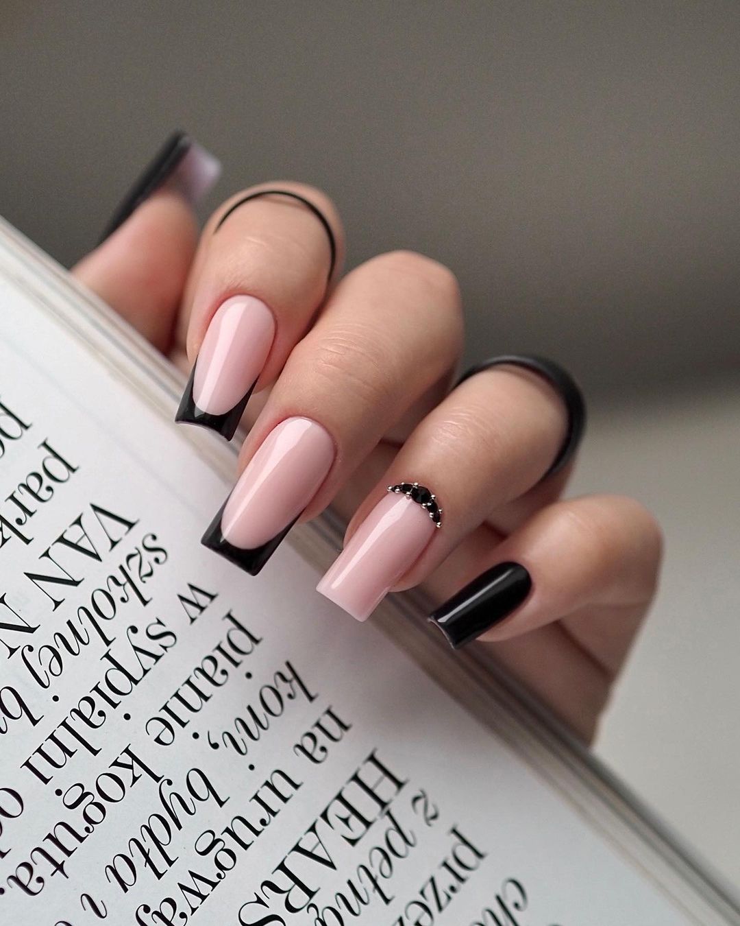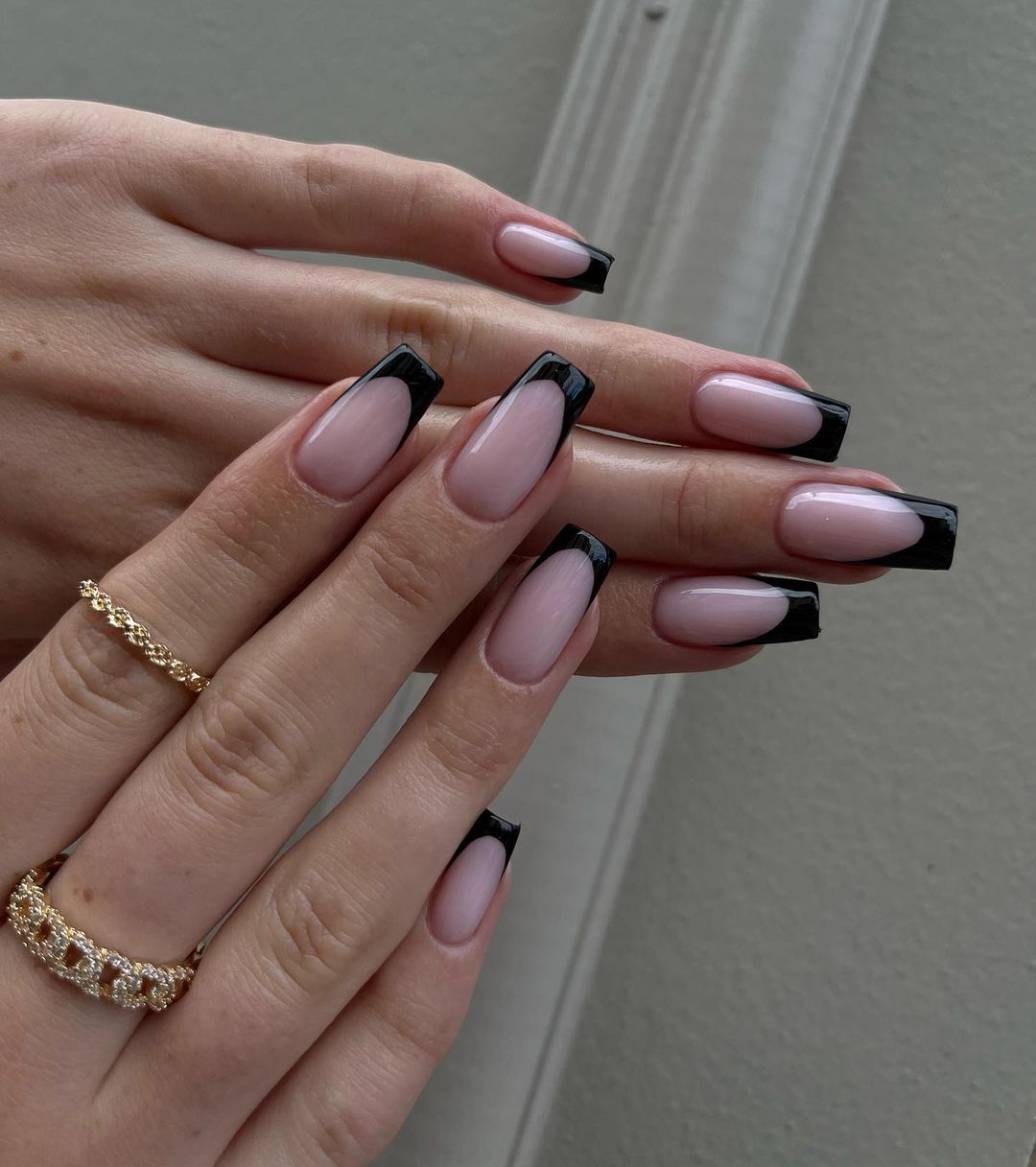 Надайте традиційному французькому манікюру родзинку, використовуючи для кінчиків чорний лак замість звичайного білого. Такий дизайн створює шикарний та стильний вигляд нігтів.