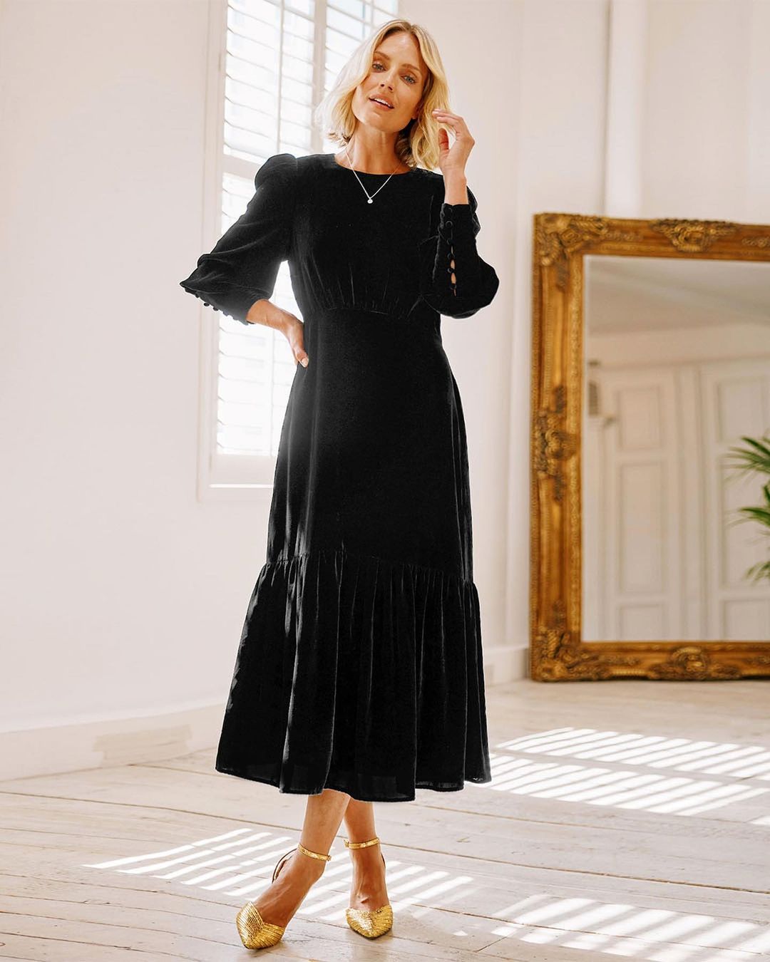 Абсолютним фаворитом у сезон зимових свят став оксамит. Оксамитові сукні насичених відтінків можна знайти в колекціях різних брендів. Варто придивитися до фасонів довжини міді або максі, з рукавами-ліхтариками та високим коміром. Також актуальними будуть сукні на запах.