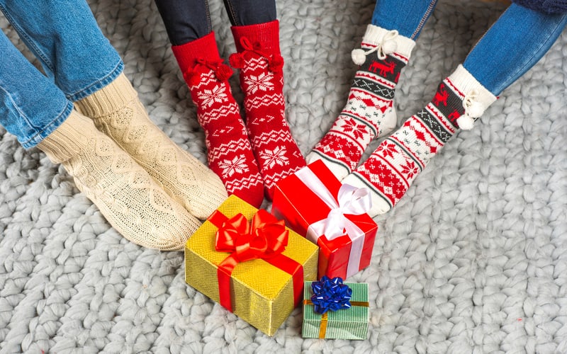 Якщо ви хочете зігріти когось не тільки своїми почуттями, подаруйте симпатичні теплі носочки або затишний святковий светр.