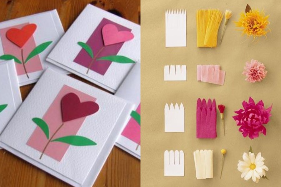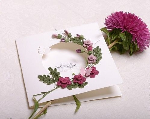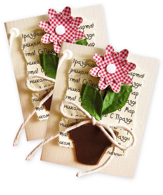 Також до 8 березня можна зробити незвичну листівку-саморобку, використовуючи газети, картон, мотузки, тканину та інші матеріали. Ви можете зробити як оригінальний вазон з квіткою, так і об'ємну листівку, де можна буде написати текст поздоровлення.
