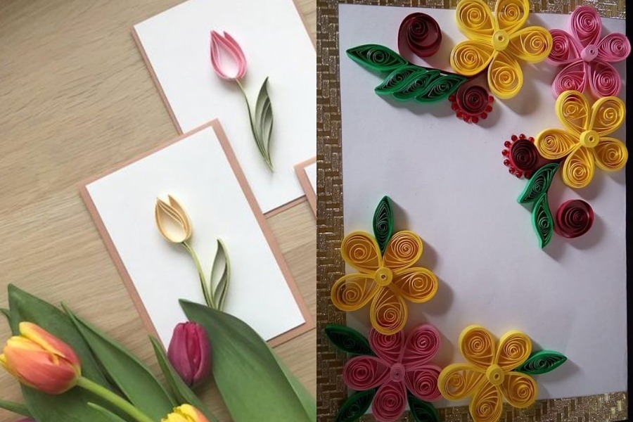 Для того, щоб зробити листівку або поробку в техніці квілінг, вам необхідно купити різнокольоровий папір, нарізати його на тонкі смужки і скрутити їх певним чином. В інтернеті є безліч роликів про цю техніку і її особливості. Також можна купити вже готові набори для квілінгу.