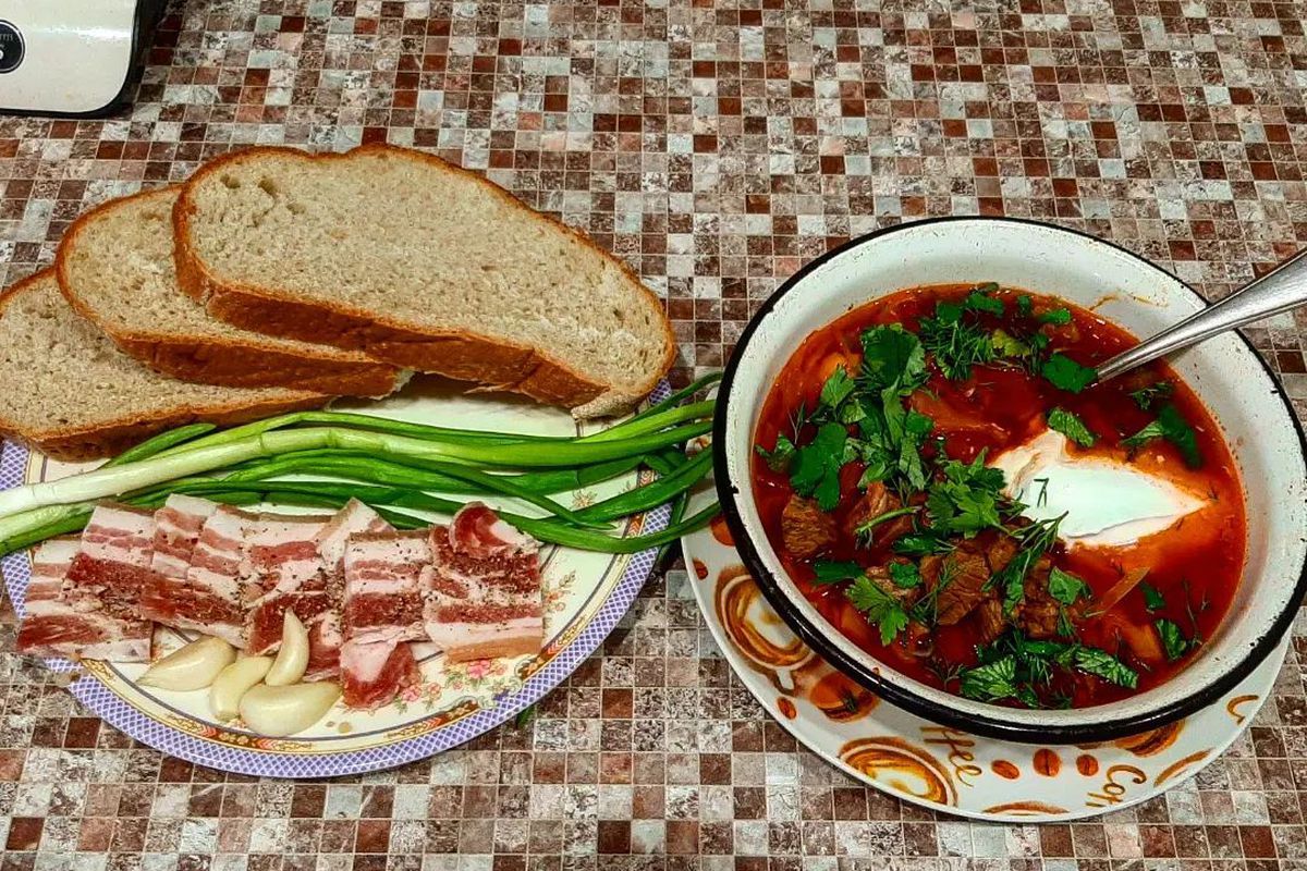 Щоб не викидати сало, із нього можна приготувати заправку для борщу. Для цього заливаємо теплою водою і залишаємо приблизно на день при кімнатній температурі. Потім розтираємо в ступі з часником або перемелюємо в м'ясорубці та додаємо в борщ наприкінці варіння.