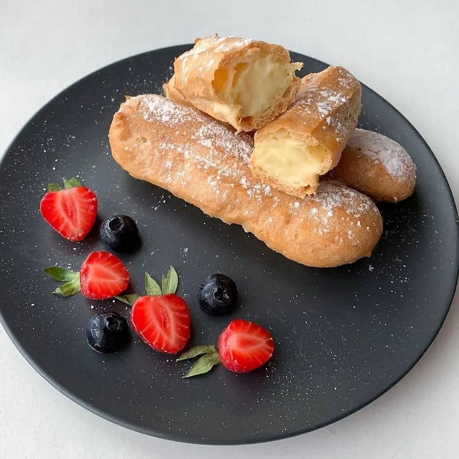 Подаємо готові еклери до столу та насолоджуємося смаком.