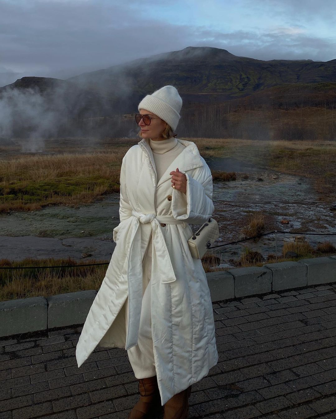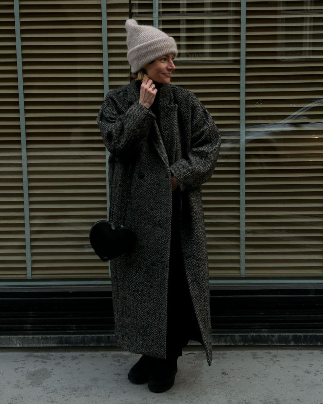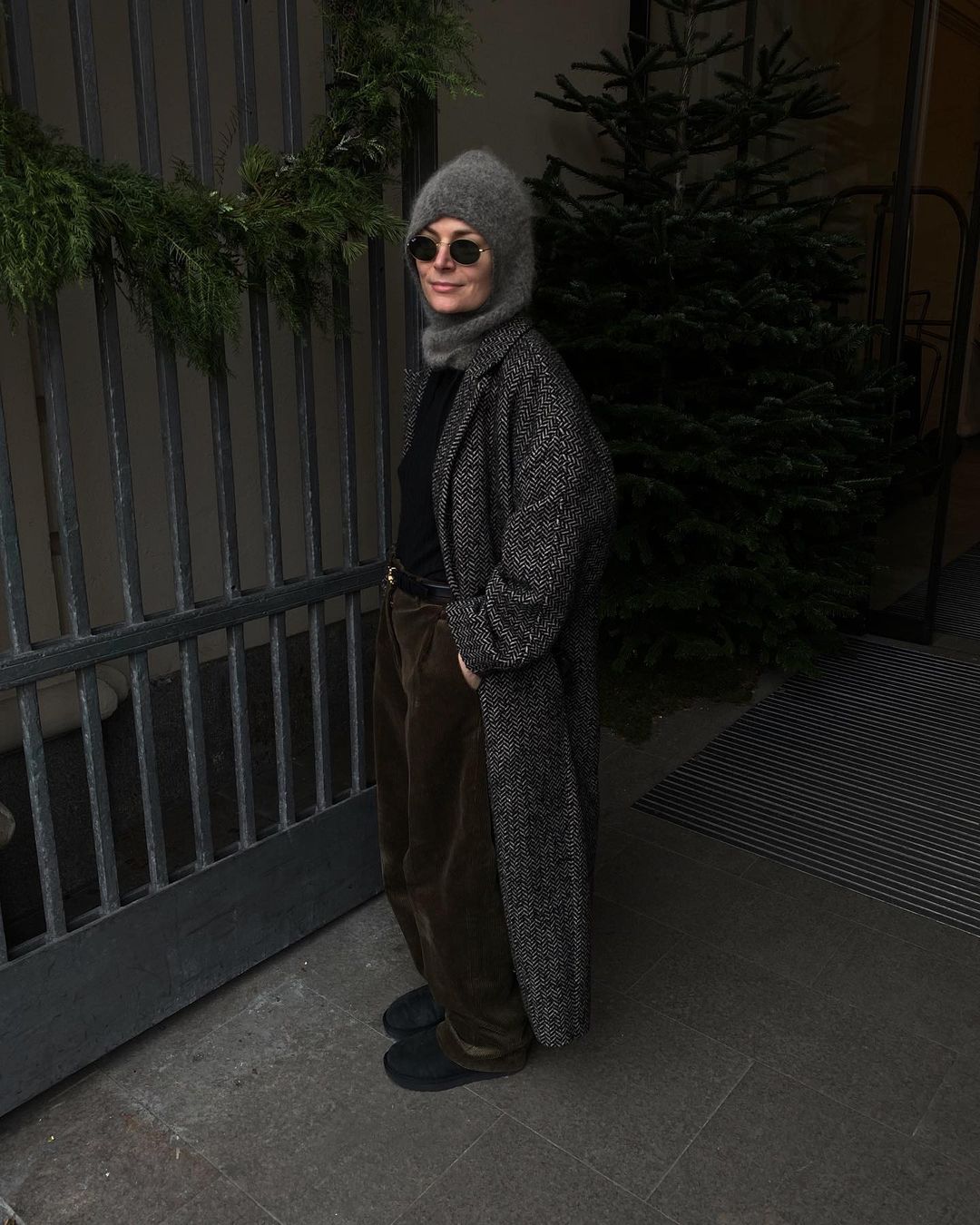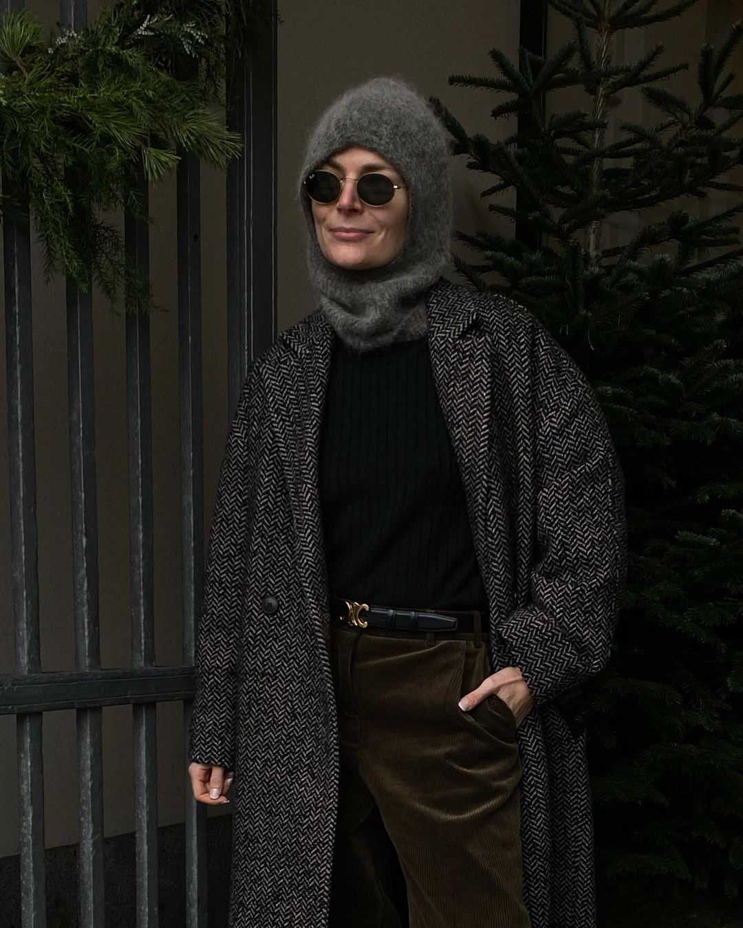 В'язаний капор носять з теплими пуховиками і поєднують із класичним верхнім одягом. Блогер воліє носити капор темно-сірого кольору в тандемі з довгим пальтом схожого відтінку. Інфлюенсер не забуває додавати в образ аксесуари, наприклад, сонцезахисні окуляри.