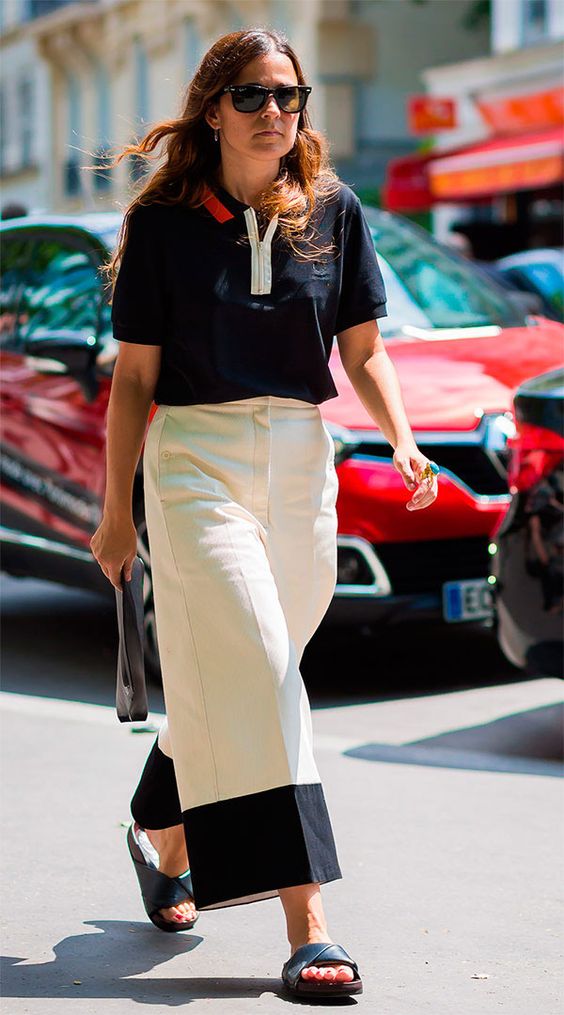 На піку популярності сукні в довжині міді та максі, які можна поєднувати з балетками, босоніжками на низькому ходу та шльопанцями.