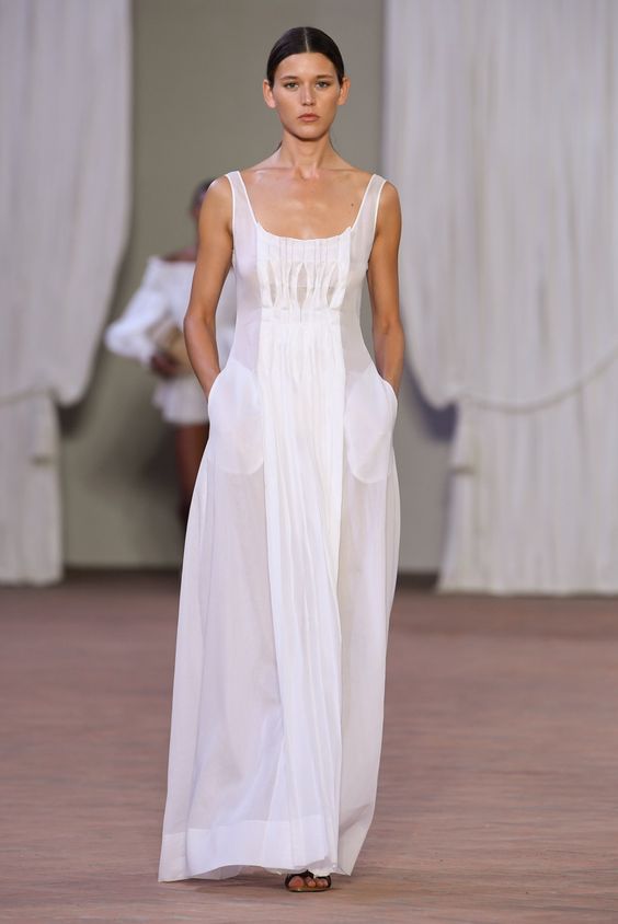 Одяг білого кольору у багатьох асоціюється зі святковими чи офіційними заходами, проте літом-2024 у гардеробі має бути хоча б одна біла сукня на кожен день. У тренді прозорі та напівпрозорі моделі, а також моделі з вишивкою, мереживом, прошвою.