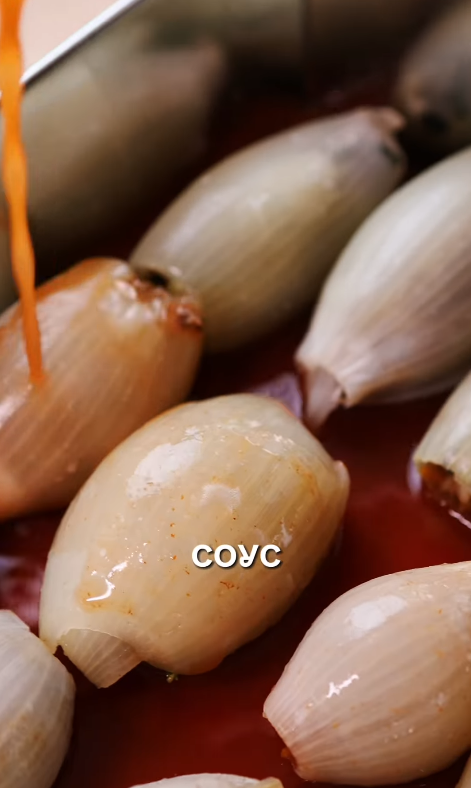 2. Цибулю дістаньте з води, обережно відокремте кожен шар і охолодіть, а воду збережіть для приготування соусу.