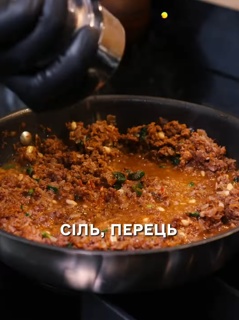 4. Додайте фарш і обсмажуйте, поки мʼясо не змінить колір.