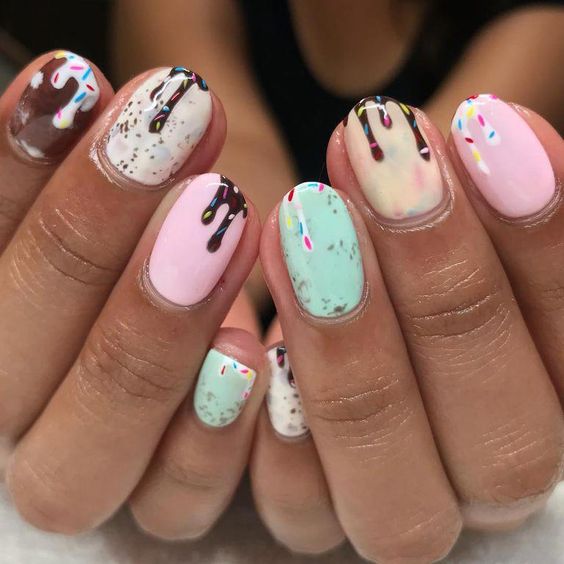 Використовуйте цього літа прозорих лак. Бежевий, блідо-рожевий та інші варіанти ніжних кольорів. А поверх нього нанесіть оригінальні арти. Так вийде одночасно яскравий і доволі ніжний манікюр.