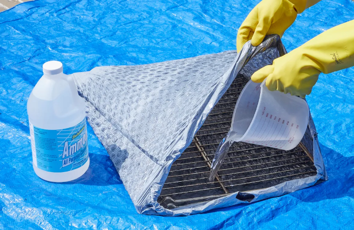 На вулиці або в провітрюваному приміщенні помістіть решітки в чистий мішок для сміття. Додайте 0,5 л нашатирного спирту. Зав"яжіть мішок і залиште на ніч.