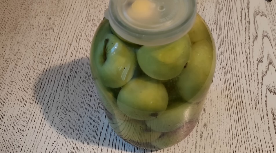 Приготування: у 3-літрову банку накидаємо помиті яблука. Якщо хочете, щоб вони заквасилися швидше, можна легенько проколоти фрукт по центру. Яблука накидаємо до верху банки, коли залишиться мало місця, можна навіть трохи їх утрамбувати.
