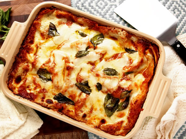 Подаємо апетитну лазанью, порізавши на порційні шматочки, і насолоджуємося смаком.