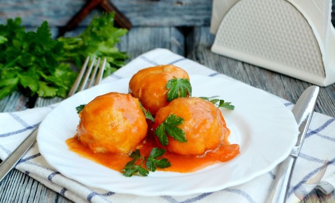 Подаємо апетитні курячі тефтелі в томатному соусі з будь-яким гарніром на обід чи вечерю.