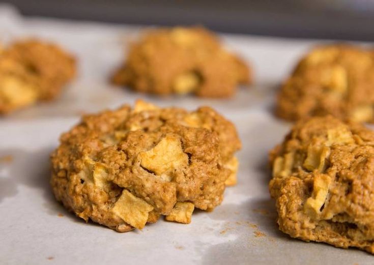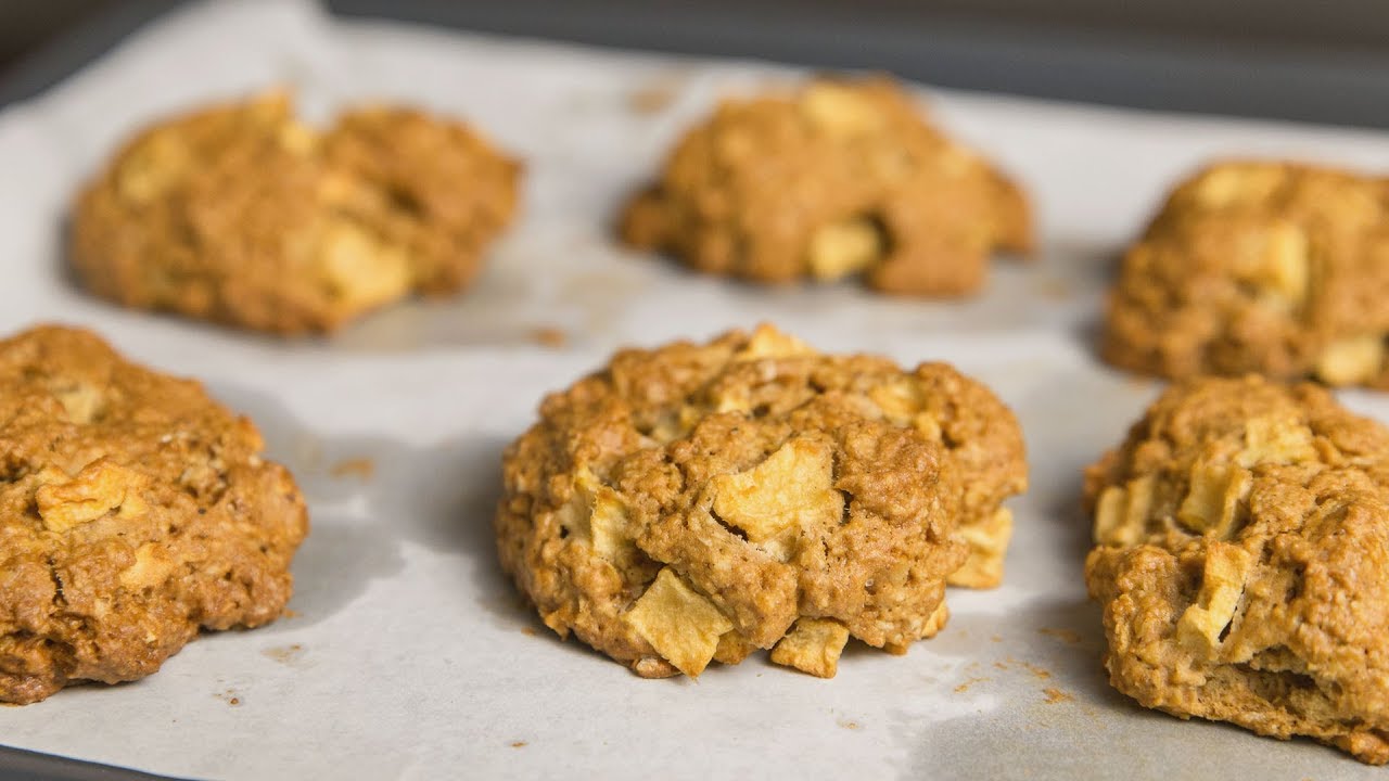Інгредієнти: вівсяні пластівці (100 г), цільнозернове борошно (140 г), цукор (100-150 г), кориця (1 ч. л.), мускатний горіх (0,25 ч. л.), сіль (0,25 ч. л.), розпушувач (1 ч. л.), ваніль (за смаком), яйце (1 шт.), яблуко (1 шт.), вершкове масло (70 г).