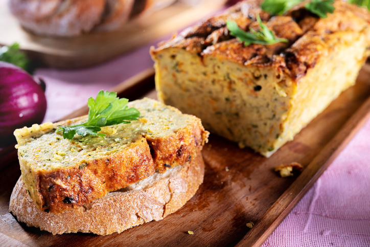 Візьміть форму для запікання, застеліть пергаментним папером і перекладіть готову суміш. Випікайте в розігрітій до 180 градусів духовці приблизно годину-півтори. Охолоджений паштет наріжте невеликими скибочками і подавайте до столу. Смачно зі свіжим хлібцем.