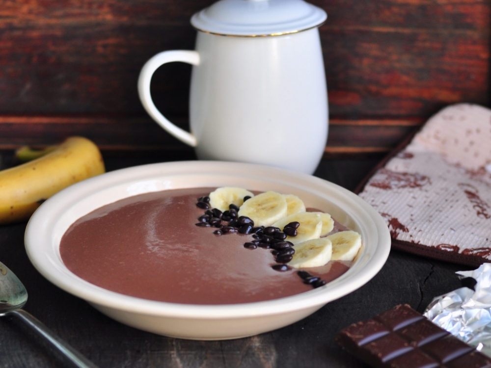 Інгредієнти: молоко (2 склянки), манна крупа (3 ст. л.), цукор (1 ст. л.), какао-порошок (2 ч. л.), вершкове масло (2 ч. л.).