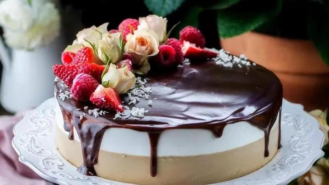 Виймаємо торт із форми і перекладаємо на велику тарілку, потім поливаємо шоколадною глазур'ю та відправляємо в холодильник, щоб вона застигла. Декоруємо на ваш смак масляним кремом, який ми заздалегідь відклали.