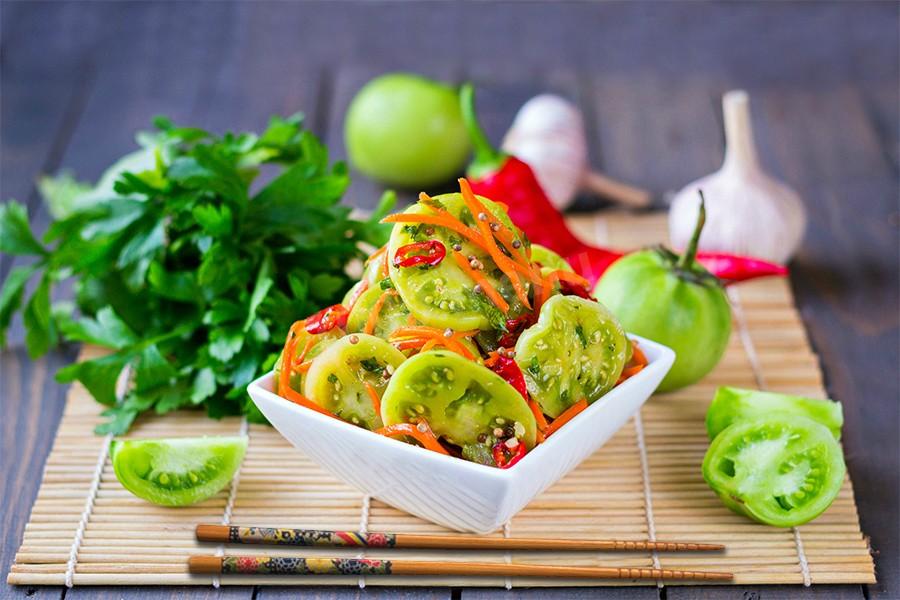 В умовах війни і продовольчої кризи, що насувається, чимало господинь цього літа вирішили вперше зробити різні заготовки та консервацію на зиму. І якщо ви вже закрили салат зі стручкової квасолі з помідорами або баклажани по-корейськи, урізноманітніть меню закускою із зелених помідорів із часником та морквою. theLime підібрав простий рецепт.
