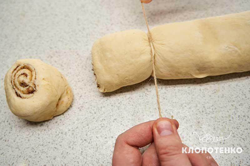 І лайфхак від Клопотенка з нарізки тіста. За рецептом синобонів тісто треба скрутити в довгий рулет, а потім нарізати на шматочки.