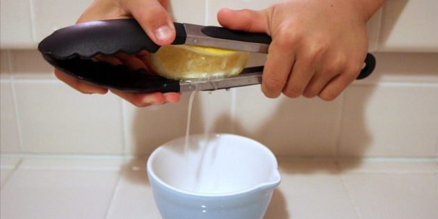 Перед тим, як вичавити лимонний сік, необхідно покатати лимон по твердій поверхні, злегка натиснувши на нього. А якщо потрібно багато такого соку, а під рукою немає соковижималки, можна взяти кухонні щипці. Просто здавлюємо половинку лимона між частинами щипців.