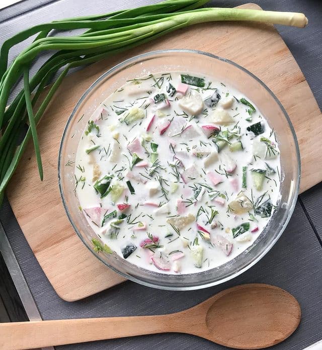 Скільки років існує окрошка, стільки вже є варіантів її приготування. Раніше ми ділилися надійним рецептом окрошки на айрані, при цьому не менш популярним залишається варіант прохолодного страви на сироватці. Як же його приготувати.