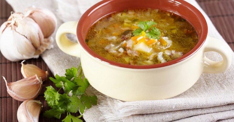 Інгредієнти: перловка (0,5 склянки), солоні огірки (2 шт.), морква (1 шт.), цибуля (1 шт.), часник (1 зубчик), картопля (2 шт.), бульйон (2,5 л), томатна паста – за бажанням (100 г), сіль (за смаком), перець (за смаком), зелень (за смаком).