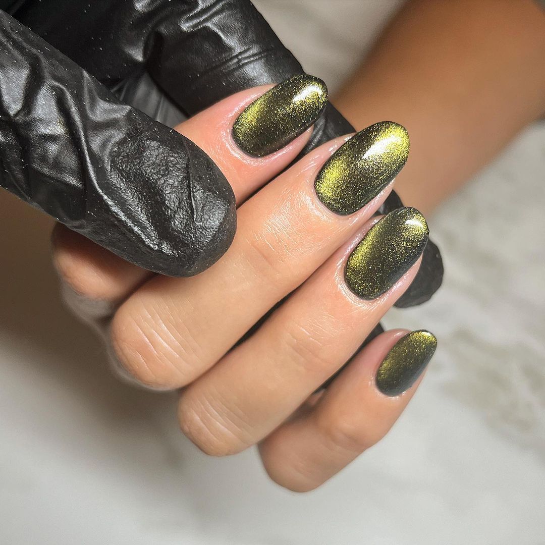 Як зробити? Підготовлені до покриття нігті покрийте базою, просушіть у лампі, після чого нанесіть перший шар магнітного лаку. Візьміть магніт та потримайте його над нігтем 3-5 секунд на мінімальній відстані. Після цього ви побачите, як металеві частинки підтягнуться і з'явиться той самий вельветовий ефект. Покриття просушіть в лампі. Повторіть таку процедуру на кожному нігті, використовуючи магніт після нанесення кожного кольорового шару. Не забудьте нанести фінішне покриття.